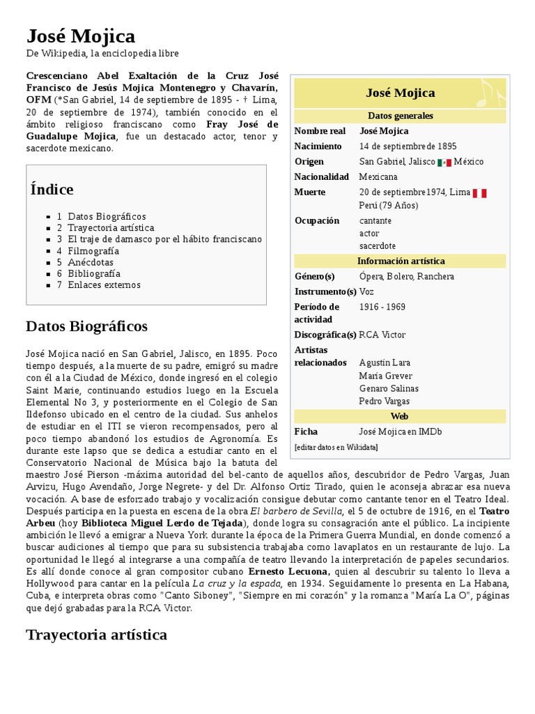Jose Mojica Wikivisually - His popular musical recordings show an attractive lyrical voice being used with skill and imagination in songs such as jurame, composed for mojica by maria grever, released by victor in 1927.